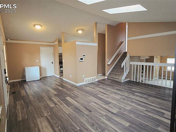 Beautifully updated tri-level home in Colorado Springs - No HOA! This 4 bed, 2 bath home has a charming floor plan with vaulted ceilings and skylights that allow natural light to flow into the home. The main level has a bay window in the living room and a dining room that walks out to the wood deck and fenced yard. The lower level includes a bedroom/office and a large family/entertainment room that provides ample space and can be used for multiple purposes with endless possibilities. This home has updated flooring and fresh paint throughout with all appliances including new refrigerator, new dishwasher, range oven and washer/dryer included. Located in a friendly neighborhood near schools and parks with easy access to restaurants, shopping and more! Don't miss out! Come see this lovely home today!