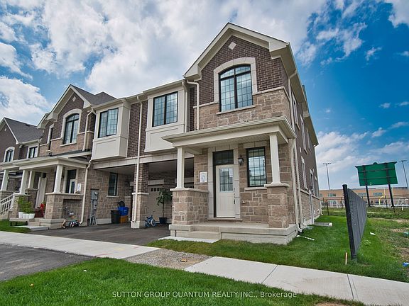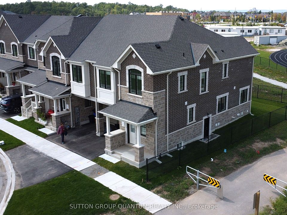 Brand-new, never-lived-in townhome by renowned builder Mattamy. This exceptional end-unit boasts a generous 1,970 square feet of thoughtfully designed space across two levels, offering the privacy and feel of a semi-detached home. Step inside and be greeted by a bright and airy open-concept layout on the main level, where elegance meets functionality. Beautiful hardwood floors flow throughout, leading you to a chef-inspired kitchen that will be the heart of your home. It features sleek stainless steel appliances, ample cabinetry, a spacious central island perfect for meal prep or casual dining, and elegant sliding doors that open directly to your private backyard, creating a seamless flow for entertaining and summer barbecues. Ascend to the second level to find your personal sanctuary. The massive master bedroom is a true retreat, complete with a walk-in closet and a luxurious ensuite bathroom featuring dual sinks. Three additional well-proportioned bedrooms provide plenty of space for family, a home office, or guests, and are serviced by a second full bathroom, also with dual sinks, ensuring busy mornings are effortless. Your comfort is further enhanced by a fantastic location that offers unparalleled convenience. You are moments away from shopping centers, restaurants, parks, and major transit routes. Families will appreciate the proximity to some of the area's **top-rated schools, all within walking distance. The home includes one convenient parking spot in the driveway and an additional spot in the private garage.