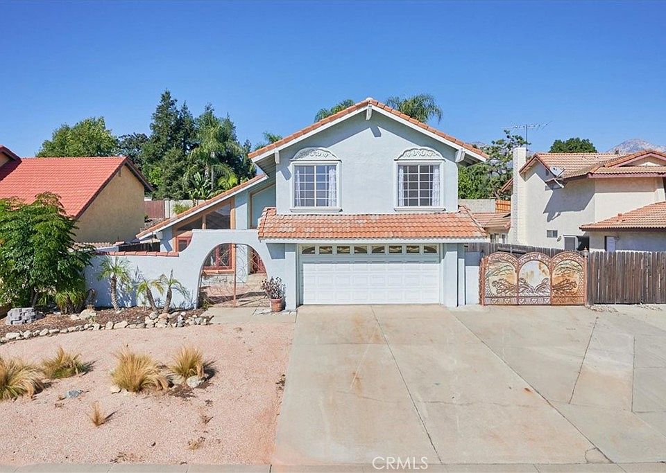 Two story home, with gated entry courtyard, in desirable North Upland neighborhood. This three bedroom 2.5 bath property has an open floor plan with two story entry, leading to step down formal living and dining rooms in one direction, and the family room with fireplace that is adjacent to galley style kitchen on the other side. A nice size half bath completes the first level. All bedrooms are on second level, including primary suite with attached bath. Back yard is spacious and fully fenced, and connects to paved RV parking behind double gates. Great layout and features, in this well located home.