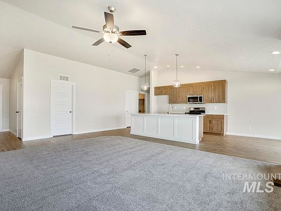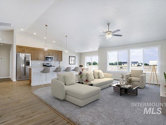 The Shoshone by Agile Homes is a single-level home with a spacious split bedroom design and features 4 bedrooms and 2 baths w/ a 3 car garage. This home is a top favorite. Located close to schools in Weiser in the new Sundance Pointe subdivision. The vaulted cielings and large windows in the main living area, allow for an abundance of natural light to flow throughout. The kitchen features our biggest island, custom cabinetry, quartz countertops, stainless steel appliances, and has a generous sized butlers pantry. Escape to the spacious 14x17 primary suite that features dual vanities, and walk in shower. This new home highlighted with low cost Natural gas, front sod, rear seed, full auto sprinklers, and pressurized irrigation. Overall, the Shoshone is a well-executed floorplan with a great entertaining area. Photos are similar/not the actual home.