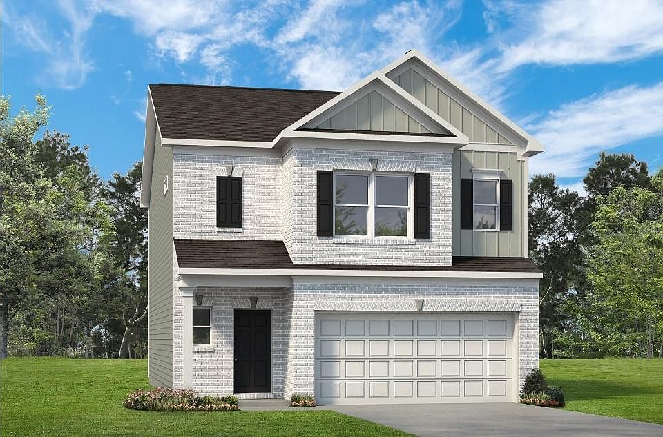Move in Ready July 2025! The Braselton II plan located in Sanders Park by Smith Douglas Homes. This home features a corner rear covered patio, directly accessible from the large eat-in kitchen with a central island, Quartz countertops, upgraded appliances, tile backsplash and upgraded cabinets. The kitchen is adjacent to the expansive, light-filled family room.  Vinyl Plank floors on the main level and blinds throughout the home.  The second story features a spacious loft that separates the Owner's suite from two secondary bedrooms. The Owner's suite includes a tray ceiling enhancing the height of the room and a HUGE walk-in closet with a private bath with a Garden tub and separate tiled shower. The laundry room is conveniently located on the second floor with all the bedrooms.  Both floors have 9ft ceiling heights. Photos are representative of plan not of actual home being built. Seller incentives with the use of one of our preferred lenders.