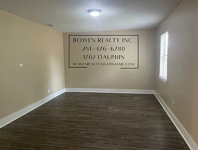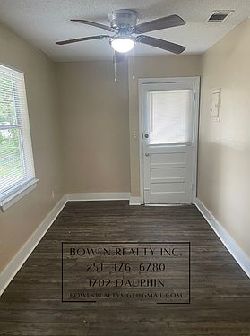 Charming home off DIP convenient close to I-10. Features include hardwood floors, NEW FLOORS, NEW PAINT JOB, central heat and air, utility room with washer/dryer connections, gas stove, electric water heater, and a large front porch. Occupant responsible for electric, water, and gas utilities. From Bowen Realty Inc.'s parking lot, go right on Dauphin St., left on Houston St., left onto Dauphin Island Parkway, turn left onto Delta St., right on Greenwood Ave., and the home will be on the left.