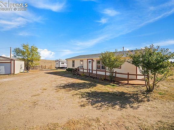 Enjoy peaceful country living on 5 acres zoned RR-5 with this well-maintained 3-bedroom, 2-bathroom home, perfectly located less than 2 miles from Schriever Space Force Base and just 8 miles from Ellicott, Falcon, and Colorado Springs. Inside, you’ll find a bright, open floor plan with spacious living and dining areas, a large kitchen with plenty of cabinetry, and a comfortable primary suite featuring a private en-suite bathroom. The secondary bedrooms are roomy and versatile, ideal for guests, an office, or hobbies. Step outside and take advantage of all the extras this property offers: a 1-car detached garage, RV parking with hookups, a fenced dog run, and a chicken coop. The 5 acres of level land provide space for animals, gardens, or future outbuildings, and RR-5 zoning gives you flexibility for rural residential use. Whether you’re looking for a quiet retreat, hobby farm, or simply more room to breathe, this property combines comfort, freedom, and convenience.