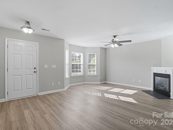 Welcome to this move-in-ready 2-bedroom, 2.5-bathroom townhome offering the perfect blend of style and convenience! Freshly painted in a neutral gray, the bright, open-concept main level features durable luxury vinyl plank flooring. The living room, with its cozy corner fireplace, flows seamlessly into the dining area and a well-appointed kitchen boasting a functional center island and modern black appliances.
