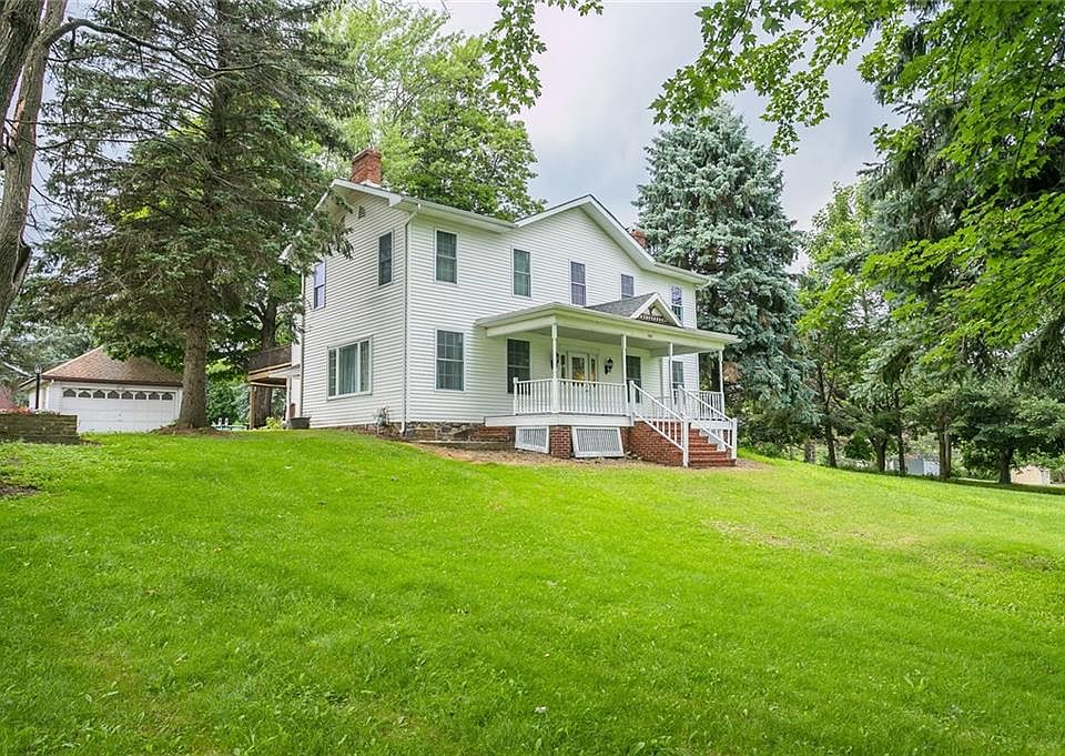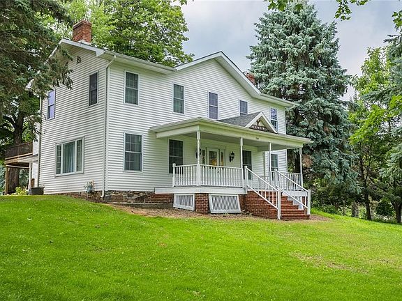 Great income opportunity! Expansive multi structure lot with stunning 5 bedroom colonial w/detached 2 car garage AND 3 bedroom ranch also w/detached 2 car garage! Large 3 bayed garage currently being rented and additional 1 car garage right behind with ample storage! Seated on over 7.5 acres, this property has no shortage of privacy and opportunity! The colonial boasts a large open porch & houses an open eat-in kitchen w/island & s/s appliances! Adjacent formal dining room w/stone surround wood burning fireplace. Separate entrance off the driveway opens to the open morning room with built in cabinetry. Cozy living room boasts ample natural light and beautiful hardwoods throughout! First floor laundry. The second floor houses a large master w/ensuite and large private deck overlooking the grounds! Featuring covered patio directly underneath the deck, this home is an entertainer's dream! The exterior is surrounded by beautiful evergreens!