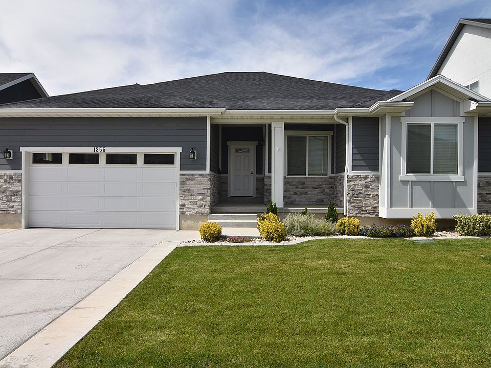 Price Reduced $16,000. NOW ONLY $699,000!! With outstandings valley and mountain views, this stunning 5-bedroom, 3 bath rambler has a fantastic open floor plan. Built in 2021, it features a complimentary and open floor design with a formal entry, large great room with a stunning wall of view windows giving you an amazing view of the valley from just about anywhere in the area and flooding the room lots of natural light. The kitchen boasts lots of quartz counter-top space, center island, gas range, fridge, and dining area with views. 3 for the 5 bedrooms located on the main floor including the owner's suite with its double basin vanity, 6-foot shower and walk-in closet. There is a laundry located on the main floor as well. Off the back you will find a large deck with a hot tub, natural gas BBQ and patio furniture (all included in the sale for your use and enjoyment). The basement is fully finished and can be accessed from both inside the home as well as from the outside basement entry. It too, features valley views from the windows and covered patio area. The basement features 2 bedrooms, a full bath, a full second kitchen with electric range, DW, fridge, etc., and 2nd full laundry. In the 2-car garage you will notice the EV charging station along with the mezzanine storage area. In addition to the hot tub, BBQ and patio furniture, the owner is leaving both fridges, both sets of Washer/Dryers. The home is serviced by two separate HVAC units, a water softener and filtration unit and an on-demand water heater. Square footage figures are provided as a courtesy estimate only and were obtained from Utah County records. Buyer is advised to obtain an independent measurement.