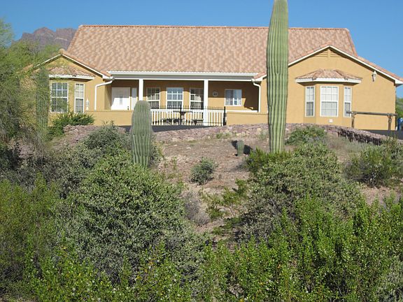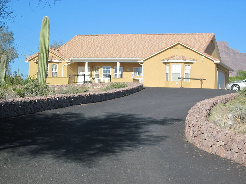 Pride of ownership shows from the moment you drive up to the home on the expansive paved driveway to the fenced pool area tastefully landscaped with native desert fauna. Pool features a water fall&gazebo and low voltage lighting. As you walk through the front door you can see the Superstition Mtns from the great room windows. Lots of French doors and bay windows. Master bedroom has separate entrance to backyard and features a full bath. Wood &tile flooring. Garage has built in cabinets & a portable air conditioner. Home sits back above the road which affords beautiful mountain and city light views. Come see this oasis in the desert, you won''t be disappointed. Refrigerator, washer & dryer convey. Seller has the plans for a 60x60 workshop that will fit nicely on the NE corner of the property