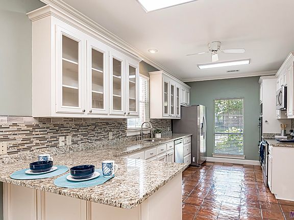 NEW ROOF, NEW FENCE, 5 new windows on order and repairs completed. Talk about a charming cottage! Beautifully landscaped entry welcomes you ... inside is a spacious floorplan with formal dining/office off the foyer with french doors to the den which boasts builtins and fireplace overlooking the covered patio. The kitchen has been fully updated and includes THREE ovens, granite countertops, stylish backsplash, two microwaves and fridge! There is casual dining bar and breakfast room. Off the kitchen is the laundry room with washer/dryer to remain and half bath. Upstairs are two guest rooms with window seat areas. At the rear is the enormous primary bedroom with sitting area open to the bath that offers two vanities, separate garden tub, walki-n shower and roomy walkin closet. A double carport flanks the rear along with a workshop with attached workbenches and storage. A spacious 2200 s.f., this is a rare opportunity in the popular Greenbriar Hollow neighborhood. And talk about convenient to everything Perkins & Bluebonnet!!