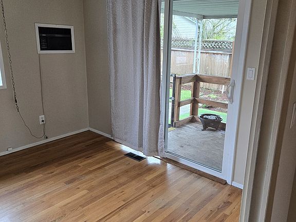 Woodburn Senior Estates 55 years and older community. Great location, near I-5 for easy access to highway, Outlet Mall, Walmart and many other stores and amenities. Senior Estates has a golf course, restaurant, pool and other activities associated with the membership. The home has hardwood floors, easy access shower, safety ramps to front door and back patio, washer, dryer and refrigerator are included. There is potential for another bedroom, buyer should do due diligence to determine cost and feasibility for 2nd bedroom. New roof installed November 2024. This home also comes with an American Homeshield, "Sheild Essential Home Warranty" that is fully paid-up and transferable with the sale of the house and does not expire until November 15, 2025. The warranty can be extended beyond November 15, 2025