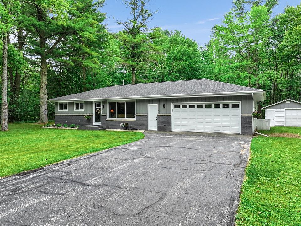 Beautifully updated 2BR/1.5BA ranch on a 3.93 wooded lot! This immaculate ranch home offers an abundance of updates including: roof, garage, doors, vinyl windows, entry doors, plaster, paint, wall/ceiling insulation, cabinets & counter tops, flooring, lighting, plumbing fixture and more ('22)! Fully-equipped kitchen w/ espresso cabs & ss appliances ('22). Nearby laundry room w/ included W&D. Convenient half-bath w/ nifty sliding barn-style door. Full bath central to Bedrooms w/ swing closet doors. Other major updates include a new septic system & siding on outbuilding ('23). WH ('24). Large wooded lot boasts abundant wildlife that can be observed from home's rear windows. Bonus 16x26 2nd garage & 14x27 pole shed. Great curb appeal!