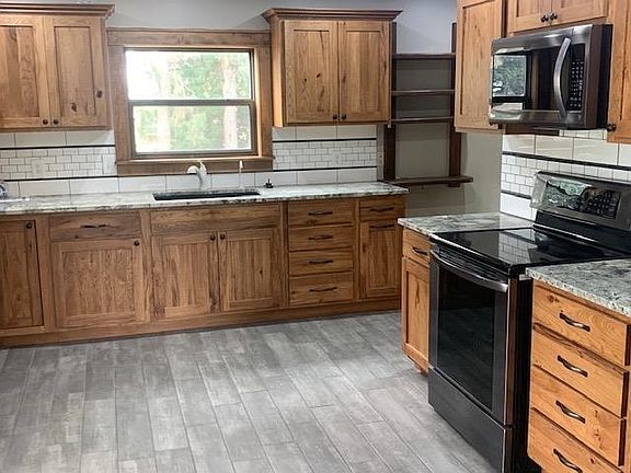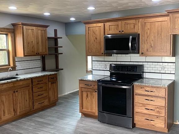 Country living! Updated home is on an acre of land, it has 2 bedrooms, 2 baths hardboard cement siding and newer roof 7 yrs old. New kitchen cabinetry with granite countertops and handles on cabinets will be changed out. The laundry room is in the basement, but has the option of a main floor laundry. The deck is new. The 3 detached garages holds 6 cars & overhead doors on both sides on 2 garages, has heating and air conditioning and there is also a workshop. Its nice to have country living and still be approximately 5 miles from town. Brand new pole shed with partial concrete plus fenced area for animals or pets. House improvements in process and buyer may have some choice in colors in paint & doors. New electrical box for generator. Electrical connector for a camper by pole shed. Call agent for details on easement. Fenced area has apple tree, other areas have peach tree and mulberry trees so of property. Square footage and info may vary from Court House. See disclosures re: easement. Average electric includes garage units as well. Wood burning stove in far garage.
