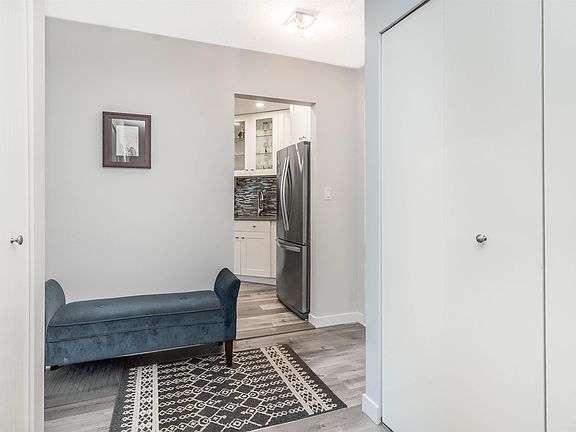 White cabinetryStainless steel appliancesSliding barn doorsEnclosed sunroomBonus storage