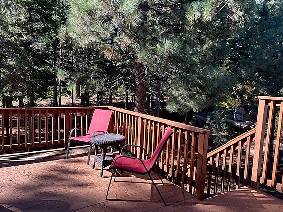 This spacious Tahoe Donner home is located on the golf course and has a great yard and convenient flat driveway. The bright living room includes cozy lodge furniture, open loft and shared bathroom.