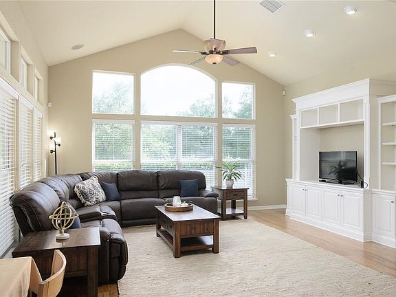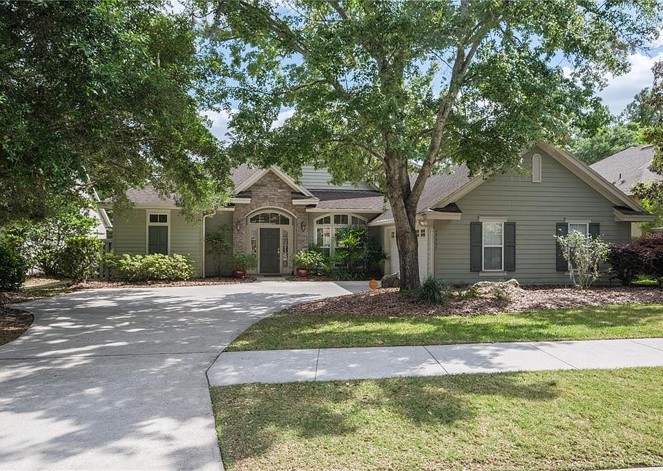 New roof will be installed before Closing! Well-appointed courtyard home by Barry Bullard on a quarter-acre lot that backs up to common area! Fenced in, oversized lanai, plenty of backyard for a pool! Located in highly-sought after Jonesville area and zoned for Meadowbrook, Fort Clarke and Buchholz! Popular 4 bedroom and 3-bath plan sprawled on over 2400 sq ft of heated/cooled space! Three-way split allowing for 3rd split as great guest room or in-law suite! Formal living and dining areas can be great remote work spaces! Beautiful kitchen has tons of cabinetry and granite counters, new premium stainless steel appliances that include a gas range, an island and breakfast bar! Kitchen opens up to breakfast nook and family room. The family room is loaded with windows, flooded with natural light, has high-vault ceilings, has built ins and is promised to wow you! All laminate and tile floors, no carpeting, surround sound, blinds, double-sided gas fireplace, built-in shelves, granite counters in kitchen/baths, crown molding, tray ceilings, courtyard-entry garage with extra driveway pad, stone accents, gutters are some of the other features! Owner's suite has direct access to lanai, has walk-in closet and luxury bath with separate tub, walk in shower and double vanities! Call now and schedule a viewing!