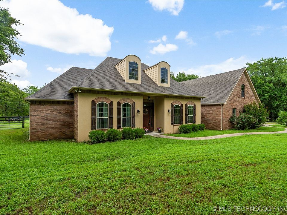 Peaceful country living meets quality craftsmanship on this rare 10-acre property in Claremore. Tucked behind mature trees, you’ll find a stocked fishing pond, a 40x60 insulated metal shop, and a home designed for both everyday living and escape. The 4-bedroom, 3.5-bath floor plan features a dedicated office, an upstairs bonus room perfect for a home gym, theater, or playroom, and a cozy living space with tall ceilings and a chef’s kitchen made for entertaining.