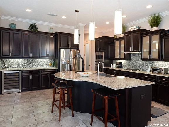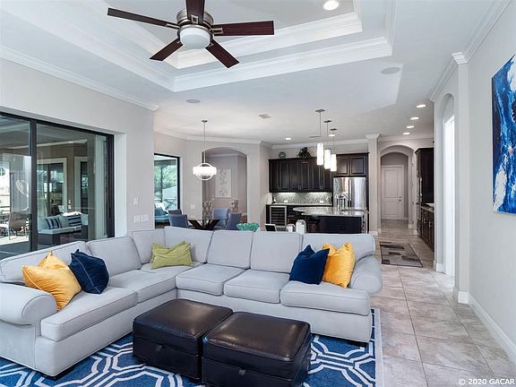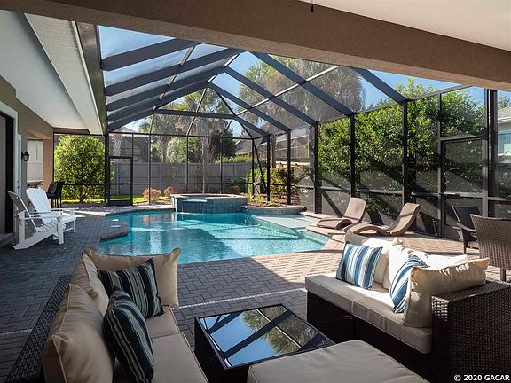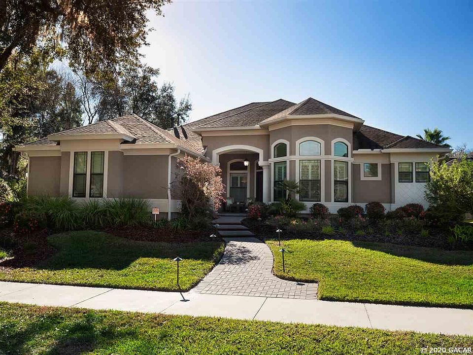 If you were making a list of features to describe the perfect home, put down the pen- this home has it all. Beautiful 5 bedroom, 3 bathroom pool home in NW Gainesville's Arbor Greens. Built in 2013 by Rutenberg, you will love the high ceilings and open floor plan. The foyer opens to the dining and living areas. This is a 3 way split plan for privacy. To the right of the foyer is a large office and the master suite. The master suite has views of the pool, hot tub and two walk-in closets. The master bathroom has two vanities, soaking tub and walk-in shower. This well appointed home has many upgrades including crown molding, plantation shutters, sound system, tray and double tray ceilings. The custom kitchen has a large island with breakfast bar, separate breakfast nook, walk-in pantry, gas cook top and plenty of storage space with 42 inch wood cabinets and granite counters. Off the kitchen is the large family room that opens to the pool or two bedrooms and a guest bathroom. The rear of the house is the 4th bedroom across from pool bathroom and a large bonus space or 5th bedroom. Off the bonus room is a summer kitchen. Laundry room with tub, cabinets and very large storage space. 3 car, side entry garage. Zoned for A+ schools.