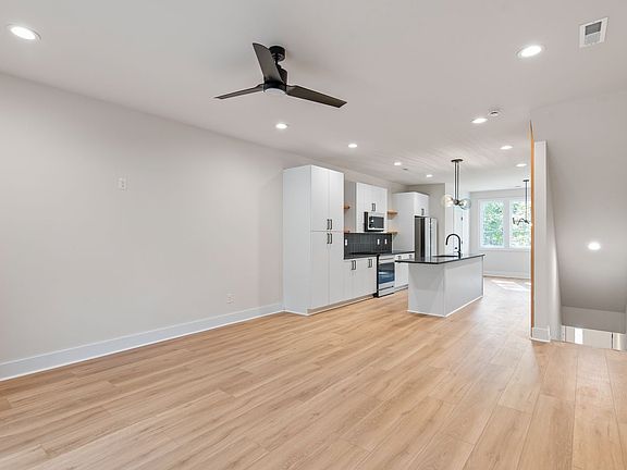 Welcome to Bishop at Briar Creek, a modern collection of thoughtfully designed townhomes in the heart of 28205. This end unit offers 1,776 sq ft of bright, open living space that balances comfort, style, and convenience. The main level features a seamless flow from the living room into the dining area and kitchen, creating an inviting space to cook, gather, and unwind. The kitchen is beautifully finished with modern appliances (including an induction stove), ample counter space, and curated lighting that elevates everyday living and entertaining.
