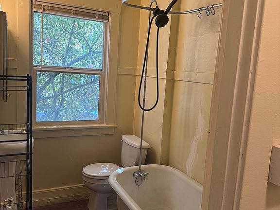 Over 400 square feet with wood floors and very large closet. Kitchen is large enough to dine in, claw foot bath tub and shower. Very short walk to downtown and Broadway.