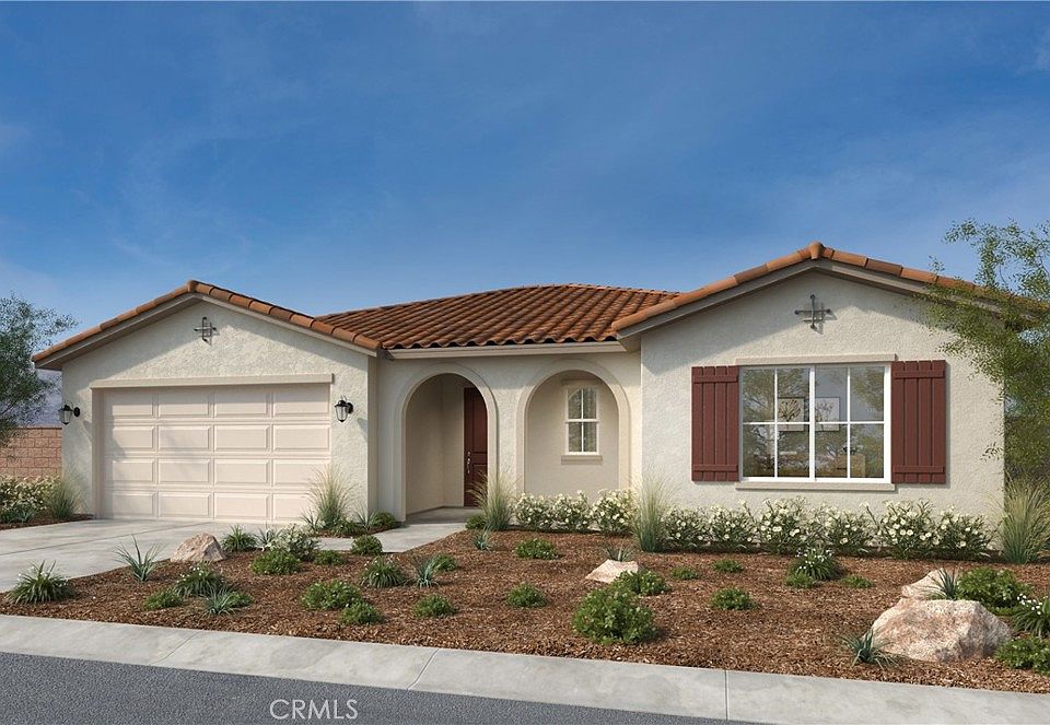Beautiful Spanish-style brand new home in the breathtaking scenic community of Vista Robles. This new home has an open concept floor plan. The large stylish kitchen that overlooks the huge great room is ideal for entertaining and holding big gatherings. Whirlpool® stainless steel appliances including over-the-range microwave, dishwasher, and electric range are included. Sprawling lot is fantastic for creating the backyard that you have always wanted. Energy-efficient features includes LED lighting, Moen® WaterSense® faucets and shower-heads, hybrid electric hot water heater, and Sunrun® solar energy system (buyer must lease or purchase) that may help reduce monthly utility bills. Close to Oak Glen, Cabazon Outlets & Morongo Casino Resort & Spa. Easy access to I-10, CA 60 & Hwy 79.