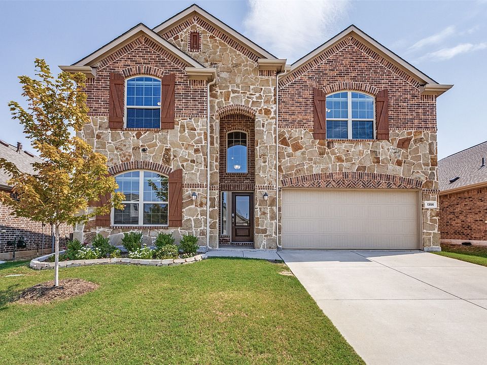 This exceptional 5 bedroom, 4 bath home has been meticulously maintained and is the perfect floor plan with TWO BEDROOMS DOWN and all the spaces a family needs. Amazing walk up appeal with beautiful landscaping. As you enter, you are welcomed with a fantastic open concept layout and sunlit soaring 2 story foyer! The dining room offers the perfect setting to entertain family and friends. Throughout the home you'll find beautiful wood-look ceramic flooring, arched doorways and crisp white cabinetry in the kitchen designed for culinary enthusiasts! A central island, breakfast bar, and pantry ensure plenty of space for meal prep and casual dining in the huge eat in area. A spacious primary bedroom and its ensuite bath are conveniently located on the 1st floor as well as a versatile secondary bedroom that provides flexibility, serving as an office, playroom, or guest suite as your needs change. Upstairs, you will find all the spaces ideal for relaxation and entertainment. 3 additional bedrooms and 2 full bathrooms complete the 2nd level offering comfort and convenience for all. Step outside to the covered patio, perfectly suited for barbecues and gatherings, while the private back yard provides a welcoming, secure space for children and pets to play. This home truly offers ample space for your family to grow and thrive in an amazing neighborhood and a location just minutes from anything you desire!