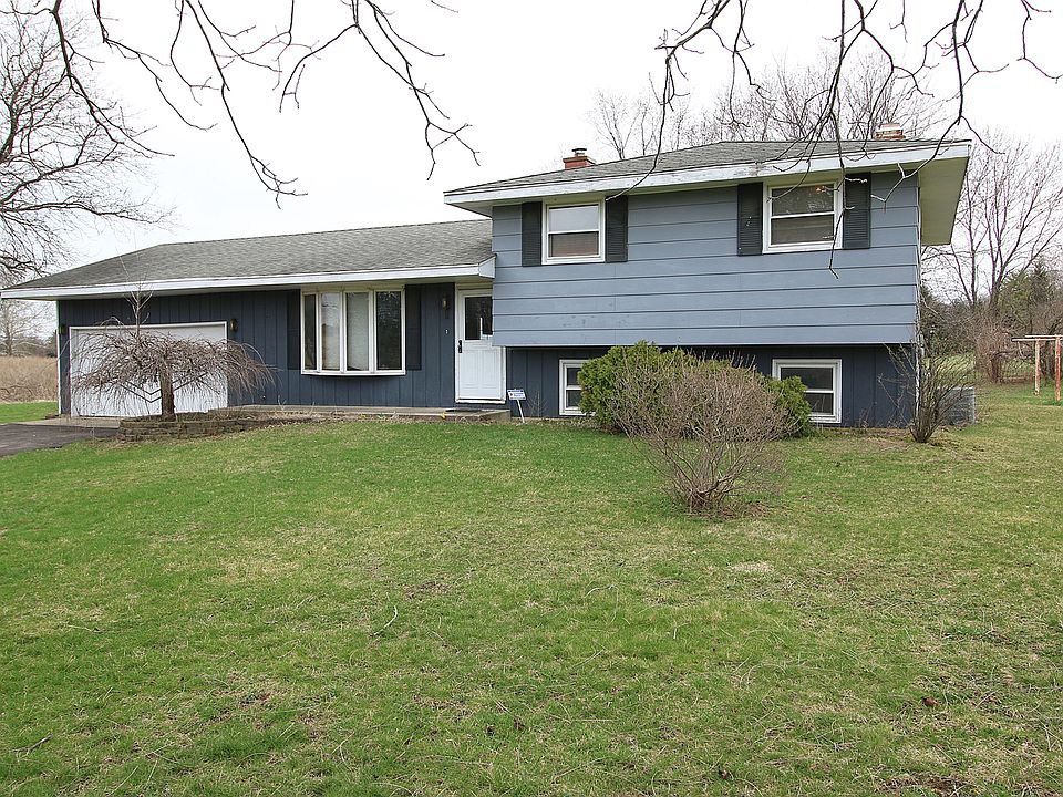 Looking for a large lot? Nearly 1 acre! This trilevel home offer 3 bedrooms all with ceiling fans. 2 bathrooms, one recently remodeled with a whirlpool bath. Eat in kitchen. Spacious family room in lower level. Huge deck and patio, plenty of garden areas, outdoor stone fireplace. Newer roof, AC and furnace, updated electric. Huge, heated pole barn, 32x40 with 10 ft. garage door for all the tools, toys and storage and a workshop! Home is being sold as is. Great location, close to parks, golf, soccer fields.