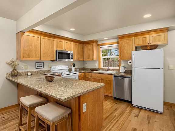 Welcome to this charming 2-bedroom, 2.5-bathroom home located on the picturesque Bainbridge Island. This home boasts two primary suites, perfect for comfort and privacy. The interior features beautiful hardwood floors and a cozy propane fireplace, creating a warm and inviting atmosphere. The covered deck and backyard offer ample outdoor space for relaxation or entertaining. The home is situated in a cul-de-sac location, providing a sense of community and safety. A one-car garage and an additional designated parking space offer convenience for your transportation needs. The community playground is a delightful addition for outdoor fun. Plus, the proximity to the Seattle ferry makes commuting or day trips a breeze. This home combines the tranquility of island living with the convenience of city accessibility. Dogs negotiable with owner approval. Tenant must carry liability insurance.