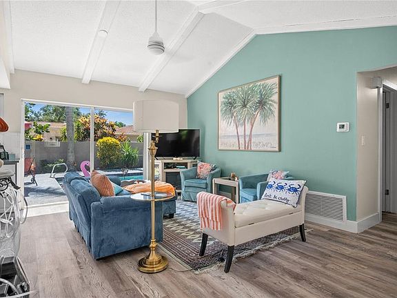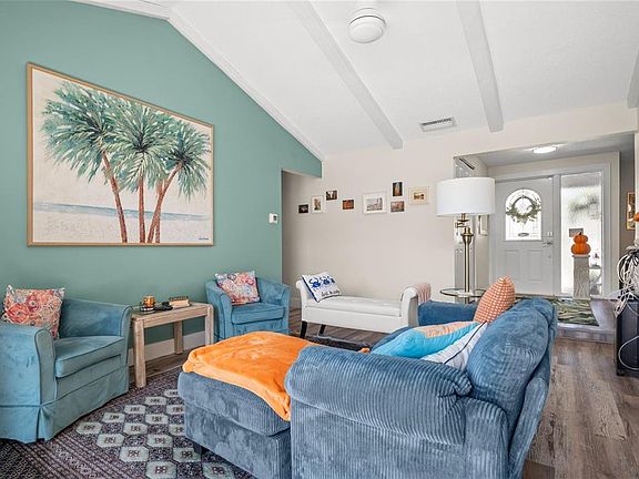 Your Private Oasis Awaits: Coastal Charm Meets Modern Luxury! Imagine ending your day in peace and serenity. As you approach this spectacular residence, you'll be greeted by a lushly landscaped walk leading to an inviting front entry. Step inside and be immediately enveloped by a sun-splashed pallet with irresistible beach vibes! The heart of the home is a dramatic, vaulted living room that offers a seamless view of your private, tropically landscaped yard and relaxing pool. The flow is flawless! The sumptuous, airy, and bright dining room opens directly into a well-planned kitchen, featuring elegant quartz counters and sleek stainless steel appliances. Every corner of this home is flooded with calming natural light, a feature dramatically enhanced by high-end, tastefully installed hurricane impact windows throughout—offering peace of mind and energy efficiency. Bedrooms & Baths: This immaculate home offers three ample bedrooms, including a generous primary suite with an en-suite bath, plus a beautifully appointed second bath with fantastic storage. Worry-Free Updates: Forget maintenance worries! Every major working component in the home has been updated within the last 6 to 8 years or less. Add to this - Location, Location, Location: Enjoy the ultimate convenience! You're only 2 miles from the sand and surf and just a short stroll to excellent amenities and schools. Best of all? It's located in a non-flood zone with NO flood insurance required. This is more than a home; it's a sanctuary designed for both peaceful living and effortless entertaining.