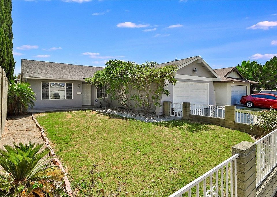 Great single story 3BD/2BA, 1338sqft home close to Friendship Park and Cerritos Elementary. The kitchen has granite counters. This home has scraped ceilings, recessed lighting, laminate flooring throughout the living area, dual-pane windows and rear slider, and blinds on all windows/slider. The major system items that have been upgraded are the roof, HVAC, windows/slider, and water heater. Fenced in front yard and covered back patio provides privacy and a good space for entertaining.