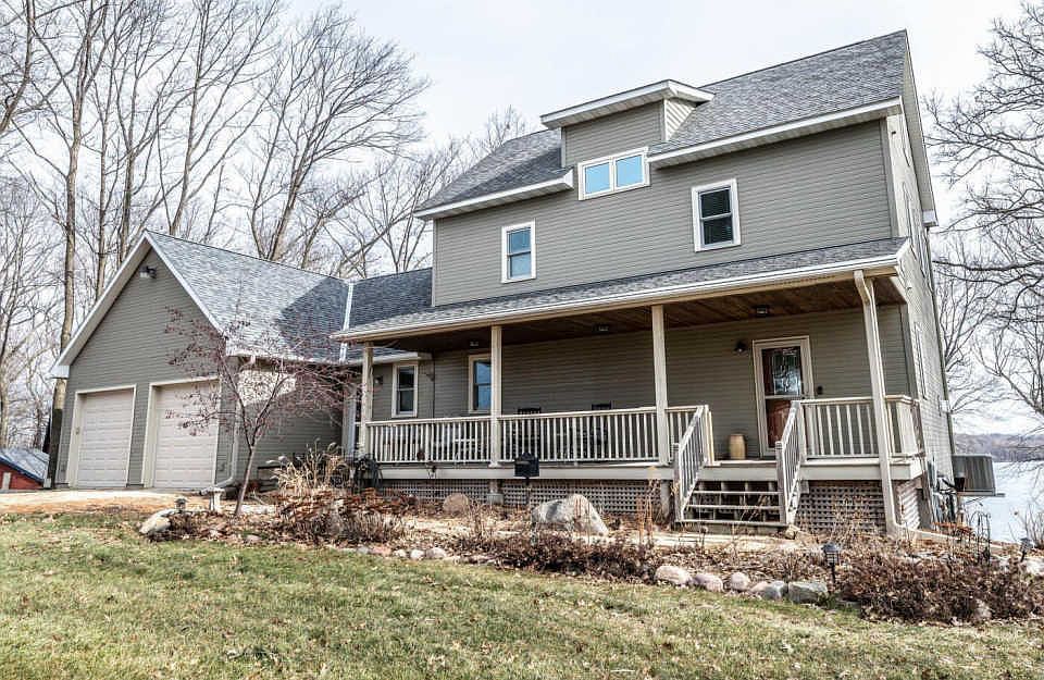 Gorgeous, 4 bedroom, 4 bath luxury home, with a picturesque lake front view on Fox Lake. Beautiful open concept kitchen with wood counter tops &large kitchen island. Main level features gas fireplace surrounded by beautiful built-in wooden cabinets, relaxing sitting room, and stunning wood flooring. Upper level has 2 bedrooms, with walk in closets, master bedroom has double walk-in closets, laundry on 2nd level. This home keeps giving more, 3rd level has 2 bedrooms and an office area, with panoramic lake views.Lower level will continue to amaze you, partially finished, in-floor heat in entire basement, ready for your personal finishing touches! Family room, 3/4 bath, ample storage area & huge man cave below garage, perfect for the handy man's workshop, including in-floor heat in the workshop too.