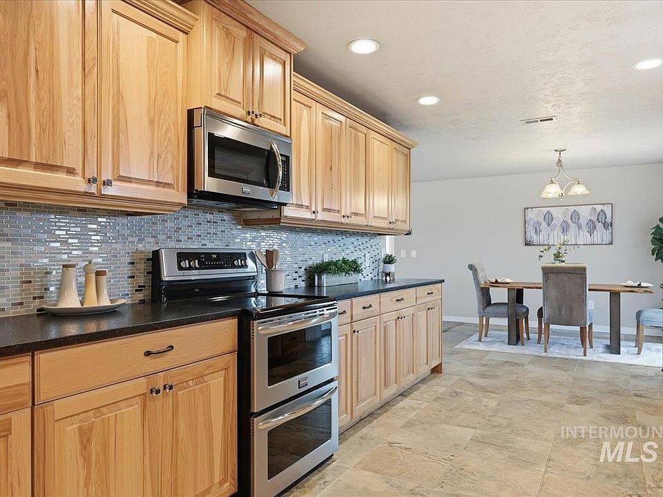 Experience refined country living in this meticulously remodeled single-level brick home set on a pristine 1.03-acre estate in Caldwell. Offering 1,920 sq ft of thoughtfully redesigned living space, this 3-bedroom, 2-bath residence showcases modern craftsmanship, timeless materials, and a seamless indoor–outdoor lifestyle. The property features an 884 sf shop measuring 34 feet long by 26 feet wide (as per county records), ample parking, and a dedicated horse pasture—an exceptional blend of comfort and functionality. With mature surroundings and serene views, this acreage home provides privacy, elegance, and room to breathe—all just moments from town conveniences. NO HOA!!! Buy with confidence! This home has a BRAND NEW ROOF and water softener in addition to new paint and carpet throughout the interior of the home! The garage doors and openers are brand new as well!