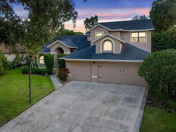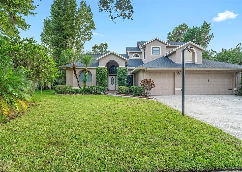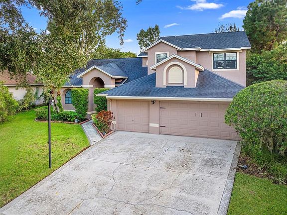 This beautiful waterfront home is ready for you to move in and enjoy. It's perfectly situated on a premium lot angled for privacy and sunset views. Conveniently located in the highly sought-after golf community of Eastwood. Step inside and discover a grand, yet welcoming, space with high-end features throughout. The open kitchen is a chef's dream, featuring a granite breakfast bar, deep farmhouse sink, beautiful cabinetry with under-mount lighting, and stainless-steel appliances. The elegant touches continue with classic crown moldings, and an ornate wrought-iron staircase. Cozy up by the wood-burning fireplace or take in the serene views through robust double-pane windows and sliding glass doors. The downstairs primary suite offers a private retreat with its own sitting area, spacious walk-in closet, and direct access to the pool. The en-suite bathroom boasts his-and-her granite vanities, a large walk-in shower, and a relaxing soaker tub. The remaining bedrooms are generously sized, and the home also includes a large laundry room with built-in storage. Your Private Outdoor Oasis Outdoor living is a dream here, with a massive screened-in lanai and a sparkling pool oasis surrounded by brick pavers. A bonus porch with large outdoor fan under canopy and a personal waterfront gazebo provide even more space for relaxation and entertaining. The backyard offers peaceful views of a wooded area and a serene pond. At the front of the home, a tranquil water fountain adds to the picturesque setting. ROOF INSTALLED 2020 WATER HEATER 2023 AC 2016 This incredible home is located in Eastwood, a beautifully maintained community offering a clubhouse, tennis courts, village pools, and a playground. It’s conveniently situated near the airport, UCF, Downtown Orlando, and the shopping and dining at Waterford Lakes Town Center, with easy highway access.