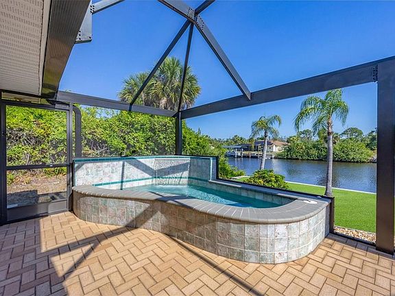 LOCATION! LOCATION! WATERFRONT!BOAT LIFT and DOCK! This absolutely stunning WATERFRONT property is on a canal with NO bridges.GREAT ELEVATION.NO HOA OR CDD.Imagine walking down the paver path to your own dock, set beside a concrete seawall and covered boat lift, and then cruise down the canal to enjoy a gorgeous west coast Florida sunset. You may even want to do a bit of evening fishing from the boat or your dock! This home has a beautiful open floor plan that has a wonderful flow from one room to the next and is completely remodeled inside with new paint, inside and out, as well as a new metal roof and whole home RO water system. Everything from LED lighting and brand-new flooring throughout. Huge new master bath with a free-standing tub, large glass shower, and floating vanity. Visitors will love the guest bath, which is totally updated with a large glass shower. The pièce de résistance is the kitchen, the heart of the home, and for those at-home gourmet cooks, you will find a large granite top island for all your meal prep, extra tall cabinets with extra storage, and, the best part, a gas oven/range, which is a rare find in Florida. All stainless-steel appliances. And for those beautiful Florida days and evenings, relax on the lanai and sip a drink in the large cocktail pool/spa while the waterfall flows to relax you. The Lanai even has a new panorama pool cage. And, when those evenings get cool, move inside to the spacious living room and turn on the fireplace! Even better, come and see for yourself. You will not be disappointed! Don’t miss the opportunity to live in this beautiful home in a quiet neighborhood with everything at your fingertips.
