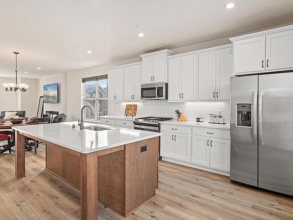 THE SPACE: The open-concept design boasts LVP flooring, a sleek quartz island, gas range, stainless steel appliances, and ample storage. A deck off the kitchen is perfect for outdoor dining. The inviting living room features a cozy electric fireplace. Upstairs, the luxurious primary suite includes an ensuite bath, dual vanity, and a walk-in closet. Two more bedrooms, a full bath, and a laundry room complete the level. The lower level offers a versatile walk-out rec room / office, finished storage. The spacious garage has additional space for bikes and storage as well as 220 outlet for electric vehicle charging.