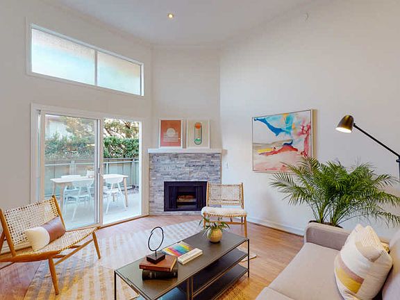 You will love this bright, fresh, and utterly beautiful tri-level condo. Imagine cozying up by the fireplace featuring modern mosaic marble tile in a living room that boasts high ceilings and a patio where you can dine al-fresco or entertain indoor/outdoor. All bedrooms are upstairs so that you can retreat to your sleeping oasis whenever needed. The Master Bedroom enjoys a balcony that one can sit outside and enjoy the rooftop and Mountain Views. With newer dual-pane windows and New sliding patio doors off the living room and bedroom you will be able escape the city and retreat to the quietness of your new home. You will love cooking in this entertainers kitchen with more than ample storage and an open view concept to be able to entertain guests while cooking. Add HOA amenities of pool/spa, water, trash, insurance, and exterior maintenance this condo is the best value around.