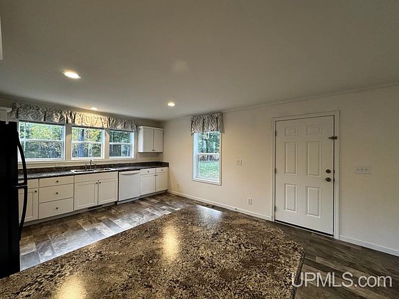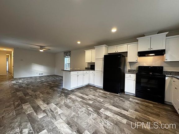 Very well maintained 3 bedroom, 2 full bath manufactured home built in 2021, featuring a detached 24x30 two car garage with power that was newly built in 2024! This home offers a modern, comfortable feel with tasteful vinyl flooring, recessed lighting, and crown molding throughout. Step inside to an open-concept living area with a spacious living room that flows seamlessly into a bright kitchen with countertop seating, plenty of cabinet space and soft-close drawers. The layout offers privacy, with the primary suite situated at the back of the home featuring a full bath and walk-in closet. Two additional bedrooms and another full bath are located toward the center of the home, perfect for family or guests and the washer and dryer hookups are conveniently located off the hallway for easy access. Major upgrades include central air conditioning, a water softener system, a craftsman storage shed, and a 22kw Generac propane generator that automatically powers the home and garage during outages. Set on 20 acres of beautiful forest, this property offers peace and privacy with trails and abundant wildlife right out your back door. Located just 12 miles from downtown L’Anse and close to Lake Superior, Point Abbaye Peninsula, beaches, parks, and ATV/snowmobile trails! You’ll love everything this property has to offer!