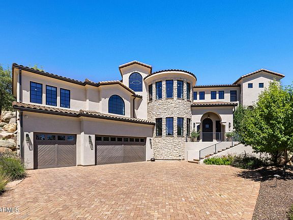 Welcome to a truly special home in Prescott, Arizona--where modern luxury meets the awe-inspiring beauty of Thumb Butte and the surrounding boulder-strewn landscape.This architectural gem features a dramatic stone turret embedded with natural crystals and fossils--a captivating centerpiece that sets this home apart.With windowed elevator access to every level, comfort and convenience are seamlessly woven into the design. Chef's kitchen outfitted with premium Wolf, Sub-Zero, and Cove appliances. The primary suite's spa-like bath offers a peaceful retreat, perfect for unwinding in style. A rare blend of natural serenity and luxurious detail--offering an unmatched lifestyle in one of Prescott's most iconic settings. For those who value craftsmanship, setting, and soul--this home is a must.