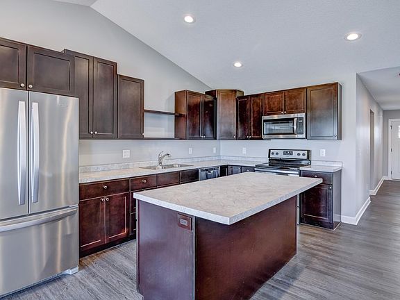 New town-home in New Richmond. Three bedroom two bath all on a single level. Very energy efficient home. Built to the most recent building energy code standards. Andersen Windows. All LED recessed lighting that consumes 90% less energy than standard bulbs. Stainless Energy Star appliances. Maytag washer and dryer. Energy efficient gas furnace and central air. Custom cabinets with soft close hinges. Solid core doors for maximum noise reduction and privacy. Very large garage (27 x20 ) perfect for two vehicles and room for storage. Rear patio with privacy fence. Association maintained including lawn care, irrigation and snow removal. Less than one mile from New Richmond Schools. Landlord pays for irrigation, snow removal and lawn care. Tenant is responsible for all other utilities.