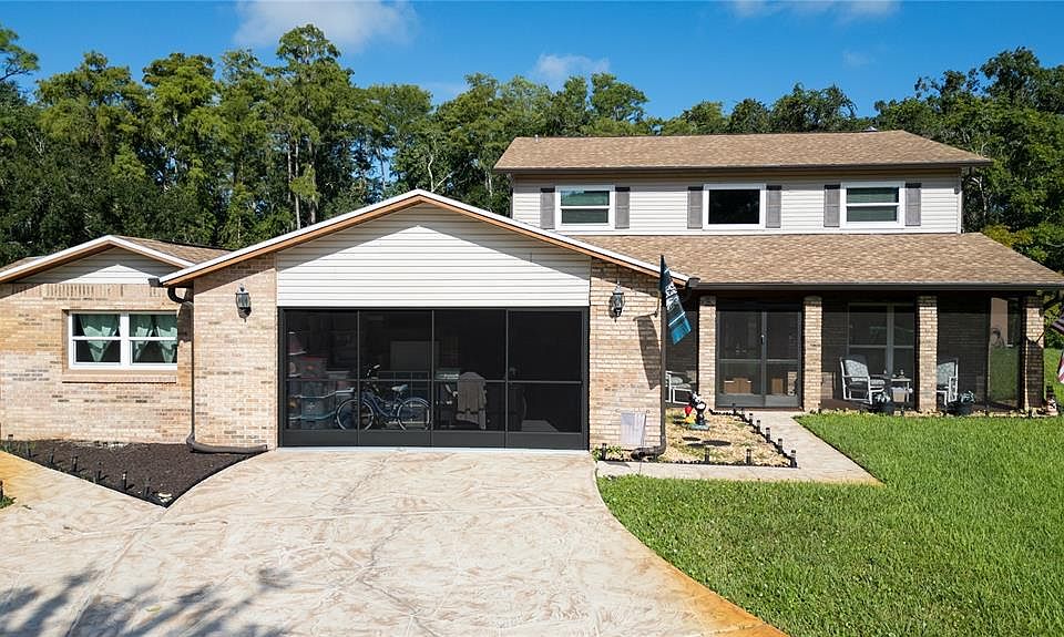 Beautiful Generational Two-Story Home with Guest Residence on Over an Acre.and a quarter. Discover the perfect blend of country charm and suburban convenience in this light and bright generational two-story home with an attached private guest residence. Set on over an acre and a quarter, complete with a peaceful creek at the back of the property, this home offers a true country oasis feel while being just across the Pinellas County line and minutes from local conveniences. The main two-story home features luxury vinyl flooring, three bedrooms including a master suite, a spacious loft, and two and a half bathrooms. Designed for entertaining, the floor plan includes a formal living and dining room combination, plus a separate family room off the kitchen with a brick fireplace. French doors open to the exceptional outdoor entertainment area, complete with a screened lanai, newly resurfaced deck, and sparkling pool—perfect for gatherings with family and friends. The attached guest residence offers over 1,000 sq. ft. of comfortable living space, ideal for extended family or seasonal guests. It boasts a brand-new 2-ton 14 SEER horizontal RUUD H/P split AC system with new ductwork, a spacious master bedroom, a newly remodeled bathroom with a walk-in shower, and its own large eat-in kitchen and living room. Private screened front and rear porches provide added comfort and independence. Additional upgrades and highlights include: New energy-efficient impact windows and doors throughout/Oversized resurfaced and stained driveway and pool patio/Separate screened porches for both homes/ A new well house with filter, water softener, pump, and 32-gallon expansion tank servicing both homes/ Two septic systems, including a brand-new 800-gallon tank with 150’ drain field. Peace of mind with extensive updates and modern systems/ This exceptional property offers the rare opportunity to enjoy a multi-generational lifestyle, a private retreat, and an entertainer’s dream—all in one.