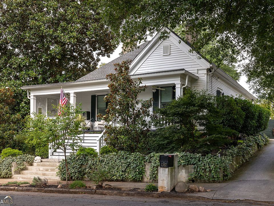 Simply iconic. A front porch fit for Southern royalty welcomes you to a home that has graced Atlanta's history for more than a century. Lovingly restored, it blends historic soul with modern comfort at every turn. Inside the central hall, heart pine floors stained a dramatic black run beneath soaring 11-foot ceilings. The original 3-bedroom, 2-bath layout now lives as a 2-bedroom with a private primary suite, featured in Atlanta Magazine (May 2025). The former third bedroom serves as an elegant parlor, while the spacious primary retreat offers a private bath, custom closet, and direct laundry access. At the back of the home, the custom kitchen features quartz countertops, floor-to-ceiling cabinetry, LG appliances, gas stove, and designer lighting. An inviting eat-in area flows to the conservatory through double French doors, framed by Pella custom windows. The interiors are elevated by one of the most complete private collections of mid-century modern furniture and art in Atlanta, featuring pieces by Knoll, Eames, Nelson, and McCobb, curated with the precision of a design museum, yet intended for everyday living-select pieces will be available to purchase. The stand-up unfinished basement provides abundant storage, enhanced with federally approved Lexan windows. Now the outdoor oasis, a 16 36 heated saline pool and jacuzzi (Maliblue of Serenbe, 2019) anchor a Brendan Butler designed garden, shaded by three prominent live oak trees, and secured with an automatic gated entry. Renovated top-to-bottom in 2019, updates include: New architectural shingle roof-New HVAC-Whole-house vacuum system-All-new wooden windows with custom shutters and shades-Custom kitchen, Custom Laundry and Pantry (Full list of renovations available upon request) The 2021-built pool house is a one-bedroom, one-bath retreat with a kitchen, polished concrete floors, interior and exterior shower, front pool closet, rear workshop, and its own whole-house vacuum system. A rare opportunity to own a residence that pairs turn-of-the-century craftsmanship with high-end modern updates plus an incomparable mid-century furniture and art collection, ready for its next steward. Come on in, Precious.