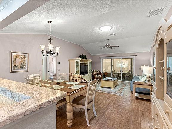 TURNKEY!!!ROOF 2020… HVAC: 2023… HWH: 2019. Welcome to The Village OF LIBERTY PARK! This beautifully maintained turnkey Wisteria model offers 3 bedrooms and 2 bathrooms with a thoughtfully designed split floor plan. The home has been freshly painted and features tasteful upgrades throughout, including luxury vinyl plank flooring in the main living areas, elegant crown molding, and natural light-enhancing SolarTubes. The spacious primary bedroom leads to a completely remodeled en-suite bathroom, showcasing a glass-enclosed shower with dual sinks and vanities. Whether you're entertaining or simply unwinding, the enclosed lanai provides the perfect year-round space to relax in comfort. With its modern updates, ideal layout, and prime location in one of Florida’s most desirable active adult communities, this home is truly move-in ready and waiting for you to enjoy The Villages lifestyle to the fullest.