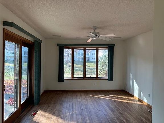 Gorgeous one level townhome in high demand area with serene views of a pond from the sunroom! This spacious home features a large living room and a sunroom with a beautiful pond view. The large mudroom and laundry area off the garage includes a closet that can also serve as a pantry. Vaulted and open living/dining, complete with a cozy brick hearth fireplace. Nice large kitchen and bright and airy sunroom with a bay window which leads out to a patio overlooking a large greenspace, perfect for games or outdoor entertaining. Owners suite has a large walk-in closet. Additional features include a walk-in pantry closet in the laundry room, 6 panel doors and a concrete driveway, new roof in 2021, exterior painted in 2022, and in-ground sprinklers. These townhomes are thoughtfully designed, with space and privacy between units, making them a top choice for discerning buyers. Located in a highly desirable area of Hastings with a short walk to the YMCA, walking paths and restaurants.