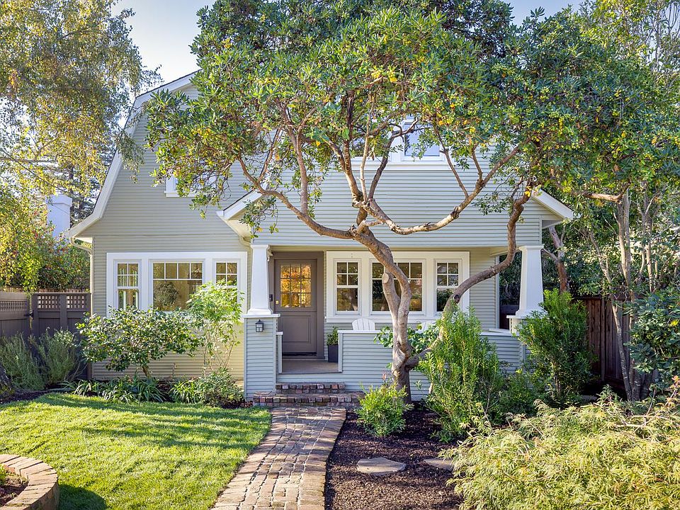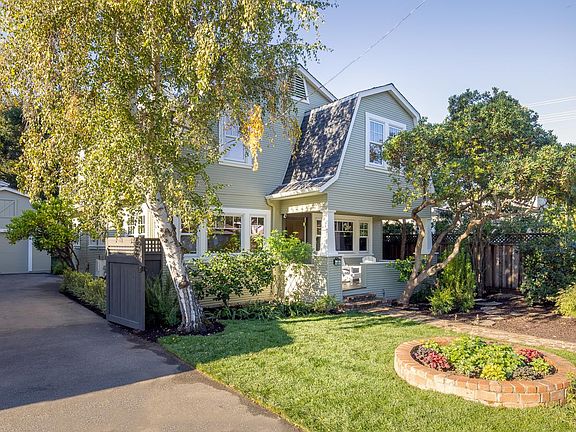 This enchanting Colonial Revival bungalow offers timeless character and modern livability in a premier downtown location just two blocks from Santa Cruz Avenue shops and restaurants. Distinguished by its Dutch-inspired roofline, the home features freshly painted interiors, beautiful hardwood floors, and refined of-the-era architectural details. The formal living room showcases a glass-enclosed fireplace while the adjoining dining room echoes the elegant moldings. The chefs kitchen combines period charm with modern efficiency through a custom color palette, Cafe stainless steel appliances, and Corian countertops, along with breakfast bar seating, a casual dining area, concealed laundry plus French doors to the rear yard. There is also a spacious family room that opens to the rear yard. 3 upstairs bedrooms (plus a bonus room) include a primary suite with shared balcony, walk-in closet, and updated bath. Surrounded by refreshed landscaping, new lawns, and flagstone patios, this turn-key home offers classic architecture, modern updates, and blocks-way convenience to downtown as well as access to acclaimed Menlo Park schools.