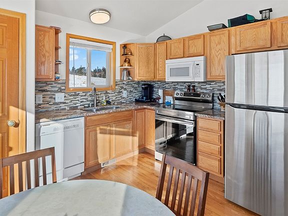 DYNAMIC AND RARE VIEWS!! Located in the highly sought after Stagestop subdivision. Private fishing rights to Tarryall Fishing Club. Enjoy 13 miles of fly fishing access on Michigan Creek, as well as access 3 stocked fishing ponds. Tarryall Reservoir is just minutes away. This beautiful mountain home is nestled on 2 beautiful partially wooded acres w/ INCREDIBLE views! (Incredible price, too.) Very warm and spacious feel with an open floor plan. Eat-in kitchen features low maintenance granite countertops. The carpet has been updated with beautiful wood flooring in the kitchen. Spacious bedrooms. Large lower recreational room with a wet bar and beverage fridge. A large upper deck and lower concrete patio are perfect for year-round entertaining. Newer roof. Large fenced dog run. Great location for short-term rentals, long-term rental or full-time residency. Must see, turn-key home is one of a kind!!