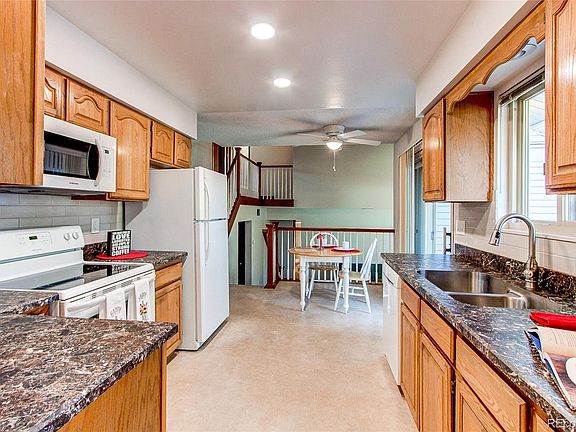 This well-maintained tri-level home in Village East offers a comfortable and practical living space. The roof is newly installed and the home includes solar panels, a radon mitigation system, and an updated electrical panel. The main level features a living area, dining space, and an updated kitchen that opens to a large deck and private backyard. Upstairs, there are 3 bedrooms and 2 bathrooms, while the lower level has an additional bedroom, a 3/4 bathroom, and laundry. The gas fireplace with stone facing adds warmth to the living space. The unfinished basement provides over 600 sq ft for storage or future use. Outside, the backyard includes a tree-shaded deck, a shed for equipment, and a sprinkler system. A two-car attached garage offers convenient parking and storage. Located on a quiet cul-de-sac, the home is ideal for families or pets. The location provides easy access to Anschutz Medical Center, Buckley Air Force Base, DTC, and DIA, with Aurora Town Center nearby for shopping and the Utah Indoor Pool for recreation. The home is in the Cherry Creek School District, with an elementary school just around the corner.