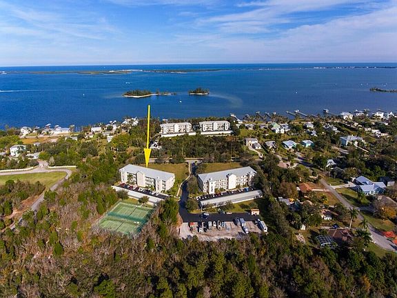 Resort style living on the Lagoon, tennis court, shuffle board, pool, clubhouse, fishing pier & a storage area for toys. Solid concrete block building, 3 bedrooms, 2 baths and a large covered porch. Includes impacted windows, elevator, trash shoot & a detached 1 car garage. Close to all the amenities. Updated AC and water heater. Furniture is included.