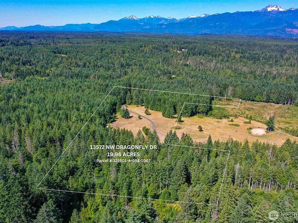 Rare almost 20-acre parcel with breathtaking Olympic Mountain views and partial Hood Canal views. A mix of cleared land and trees offers privacy and natural beauty. Private paved driveway winds through the trees, opening to multiple cleared building sites. Power on site, shared well installed, 3 sides are fenced. Most of the work here has already been done! Do more clearing to open more mountain views! Hard to find Pacific Northwest setting with western exposure. Peaceful, private, and full of potential— buyer to verify if it can be subdivided. Perfect spot to build your dream home —bring your builder and vision! Close to Seabeck Marina, 20 minutes from Silverdale. Must be accompanied by a broker to enter onto the property.