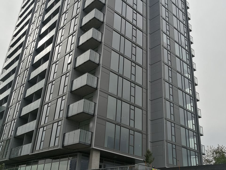 Brand new completed highrise building, spacious 900 SF 2 bed with a den, air conditioning, higher level with amazing view located Centre of Surrey. Holland park nearby. Walkable to Skytrain, minutes to Shopping Mall.