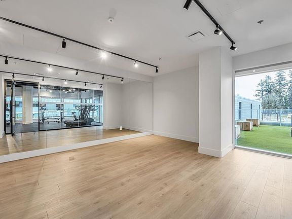 A/C available. Modern 1-bedroom condo offers a well-designed open-concept layout with efficient use of space and quality finishes throughout. The home features built-in heating and air conditioning, in-suite washer and dryer, and a private balcony. Located in a well-managed concrete high-rise, the building offers excellent amenities including a fitness centre, resident lounge, shared kitchen, BBQ area, and dedicated work or study rooms. Secure underground parking and a bike locker are included. Conveniently situated in Central Surrey with easy access to major routes, transit, shopping, restaurants, and everyday amenities. Ideal for professionals seeking comfort, functionality, and modern condo living. Two identical units are available in the same building, located one floor apart.