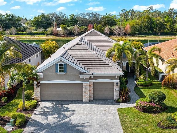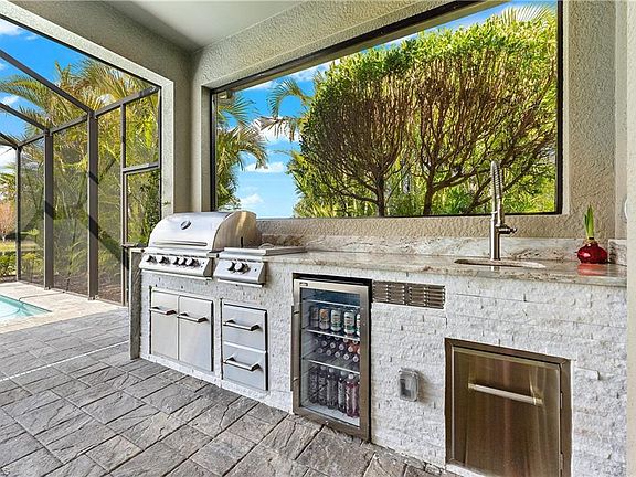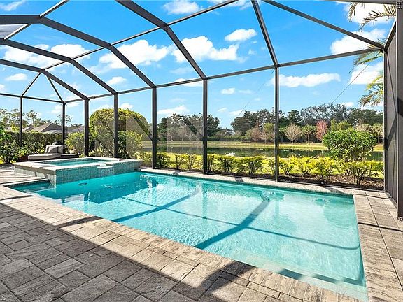 GORGEOUS CUSTOM POOL/SPA HOME WITH WIDE WATER VIEWS AND 3 CAR GARAGE IS NOW AVAILABLE IN DANIELS PLACE! This Residence was built by Neal Homes in 2017, and offers 3 Bedrooms + Den, 3 Full Baths (One Guest Bedroom has an Ensuite Full Bath) + Powder Bath, 3 Car Garage, 2,337 sf living area. This home is equipped with IMPACT WINDOWS AND DOORS, and Whole Home WATER SOFTENER. The OVERSIZED COVERED LANAI features POCKETING SLIDING DOORS and has an abundant amount of LEISURE SPACE for watching your favorite sports, listening to music or enjoying time with family and friends. Take in those SPECTACULAR FLORIDA SUNSETS YEAR ROUND over the shimmering lake with this Western Rear Exposure home. The Grillmaster of your family will be delighted to start cooking on the DELUXE OUTDOOR KITCHEN equipped with a STAINLESS STEEL GRILL, separate GRIDDLE, BEVERAGE FRIDGE and SINK. Cool off in the CUSTOM SALTWATER POOL or unwind in the RAISED SPA with SPILLWAY water feature, both heated by NATURAL GAS. Inside this immaculately kept home you’ll find many DESIGNER FEATURE WALLS, WOOD TRIM and SHIPLAP. The Greatroom boasts SOARING COFFERED CEILINGS and WOOD TRIM Feature Wall. The OPEN CONCEPT Kitchen with White Cabinetry and Large Kitchen Island is appointed QUARTZ countertops, Custom tile BACKSPLASH, REVERSE OSMOSIS at the sink, NEW Stainless Steel Appliances including a GAS RANGE. The Primary Suite features an upscale vibe with COFFERED CEILING, LUXURIOUS WALK-IN SHOWER and CUSTOM BUILT IN CLOSET. Enjoy the low maintenance of porcelain tile throughout this home (NO CARPET ANYWHERE... great for pets). Laundry room has upgraded front loading washer and dryer. Garage features overhead storage racks, built in Closet and EPOXY Floor. Other features include CLOSET ORGANIZERS in Guest Bedrooms, HEAVY GLASS ENCLOSURES, SECURITY SYSTEM, SMART HOME DEVICES. Daniels Place is known for it’s LOW HOA FEES for a GATED community and conveniently located in Fort Myers with Dining and Entertainment all around, and only a short drive to the Southwest Florida airport, Boston Red Sox Spring Training, Healthcare facilities and Beaches.