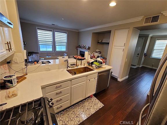 BACK ON THE MARKET!! No look further!! Welcome to this beautifully updated and well-maintained end unit located in Crystal Lane in Chino! A great open floor plan 3 bedroom, 2.5 bath offers beautiful wood flooring in the living room, and new laminated flooring in the 2nd bedroom. Spacious-sized master bedroom, and an en-suite bathroom with new laminated marble flooring, an updated dual sink vanity, toilet, cabinet, and mirror, additional bedrooms with a hallway full bath. The adjacent kitchen boasts updated quartz countertops, a breakfast bar in the dining-kitchen area, new tile backsplash, and stainless-steel appliances including a Kitchen wifi smart enabled commercial stove, kitchen hood, and sink. New window blinds, A/C Google Nest thermostat controller, water softener, electronic door lock, garage opener / Wifi Smart myQ, A/C Nest Controller, Wifi Smart Light Switches (7), and Blink Video Doorbell. A cozy fireplace, spacious front porch area outside, plus direct access to a 2 car garage. Conveniently located near shopping, dining, and entertainment, this home offers the perfect combination of style, comfort, and location. Don't miss out on this amazing opportunity to own a beautiful home. This home is sure to impress!! A must-see!!